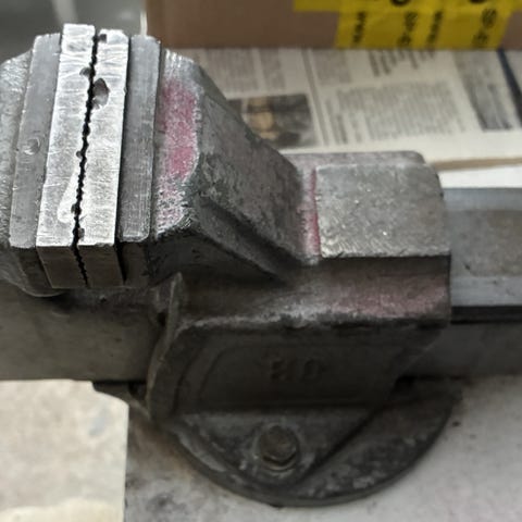 Käyttö kunnostettu Record viilapenkki. Leukojen leveys 110mm ja aukeama 150mm.