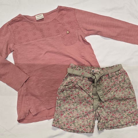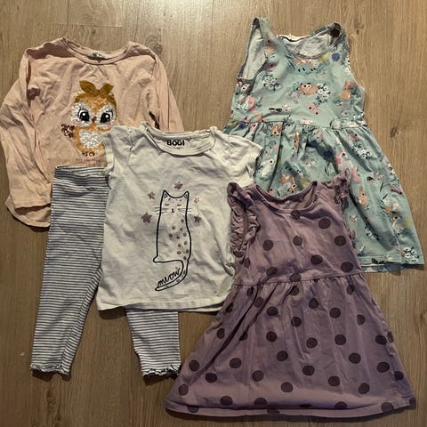 Vaatteita koossa 104/110, paita Pompnde Lux, housut Zara ja H&M
