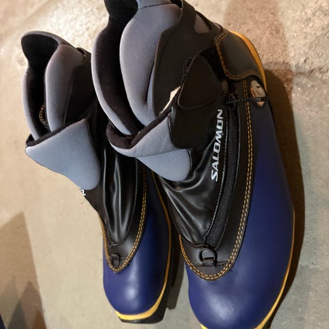 Salomon hiihtomonot, koko EU 44 (UK 9,5 / US 10 / 28 cm). Väri pääosin musta, tehosteväreinä keltaista, punaista ja sinistä. Monossa on korkea varsi ja vetoketjullinen päällinen, joka suojaa lumelta ja kosteudelta. Pohjassa karkea kuviointi ja tukirakenne. Soveltuu maastohiihtoon; tarkempi siteyhteensopivuus kannattaa varmistaa siteen mallin mukaan.