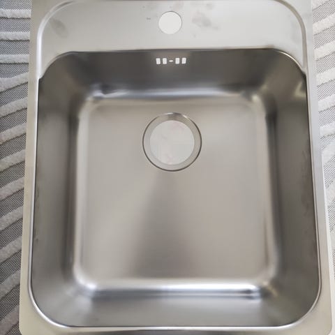 Ruostumattomasta teräksestä valmistettu tiskiallas, kulmikas 68x45cm. Ei olut sittenkään sopiva meidän suunnitelmiin.