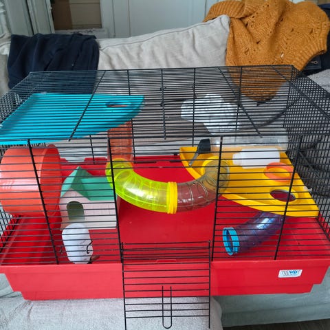 Hyväkuntoinen hamsterin häkki. Pieniä kulumäjälkiä. Koko