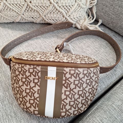 DKNY:n musta vyölaukku, valmistettu 100 % nahasta, tekstiilivuori ja kultaiset yksityiskohdat. Laukku on one size -kokoinen ja vyö on säädettävä.