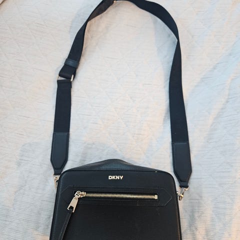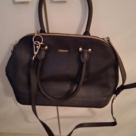 Kunto on muuten hyvä, mutta huomioitavaa on, että laukun sisäpuolella olevassa DKNY-emblemissä reunan pinnoite (glazing) on halkeillut (kuva liitteenä). Lisäksi laukun takaosassa (vatsaa vasten tulevalla puolella) on hieman värinsiirtymää, mikä näkyy myös kuvassa, mutta ei huomaa laukkua käytettäessä.