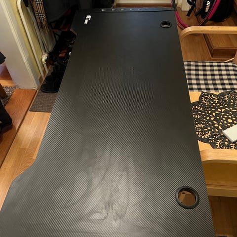 Pöydän tasossa on tarra mitä emme saaneet irti.