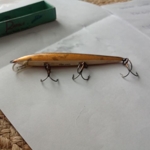 Kyseessä on varhaisemman tuotannon Suomessa valmistettu balsarunkoinen Rapala, kultafolioidulla viimeistelyllä. Viehe on käyttämätön ja erittäin siistissä kunnossa.