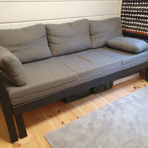 Levitettävä sohvasänky, leveys 160cm levitettynä. Mukaan saa kaksi patjaa.