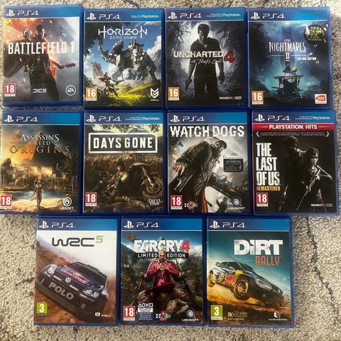 Playstation 4 -pelipaketti, joka sisältää seuraavat pelit: EA Sports FIFA 23, EA Sports FIFA 25, Gran Turismo Sport (PlayStation Hits), Fallout 76, Call of Duty Black Ops 4 sekä Subnautican. Pelit ovat PS4-julkaisuja koteloineen. Sopii Playstation 4 -konsolille. Ikärajoitukset vaihtelevat peleittäin (mm. PEGI 3 ja PEGI 18).