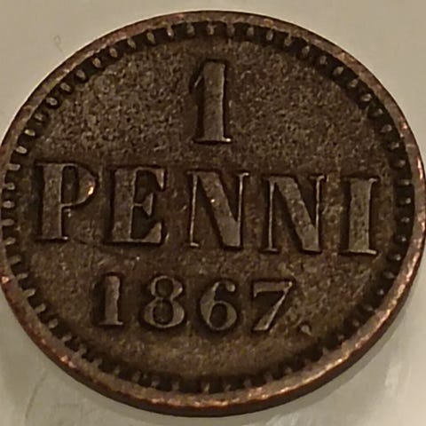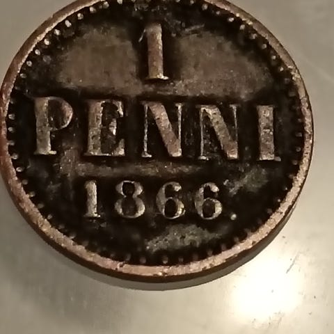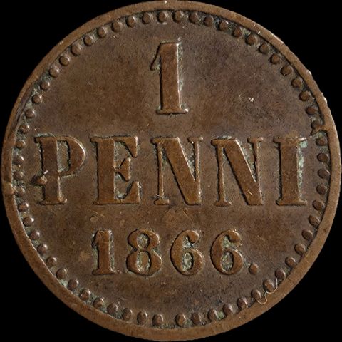 Suomen 1 penni kolikko 1866