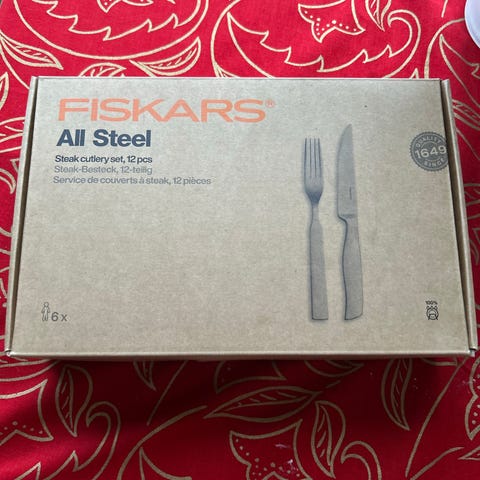 Fiskars All Steel aterinsetti ruostumattomasta teräksestä. Setti kuudelle.