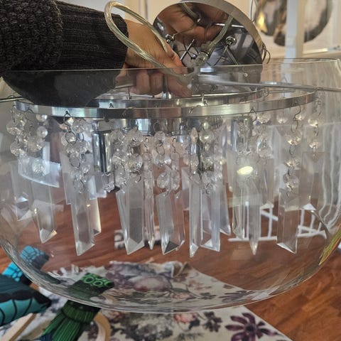 Kattokruunu lasinen riippuvalaisin metalliketjulla