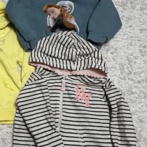 Huppari turkoosin värinen 92 cm, college itse tehty n. 100 cm. Molemmat yhden lapsen käyttämiä.