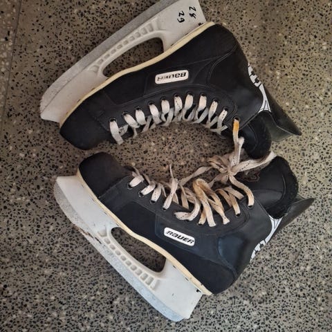 Jääkiekkoluistimet, koko 8. Koko vastaa 43, pohjallisen pituus 27cm (kuvassa mitattuna).