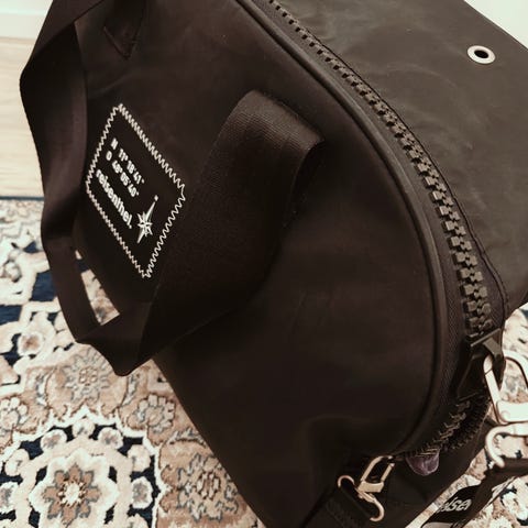 Musta–valkoinen matkalaukku vetokahvalla. Laukussa on pyörät ja teleskooppinen vetokahva helpottamaan kuljettamista. Edessä on vetoketjutasku pienemmille tavaroille ja pääosassa tilava säilytystila vaatteille ja muille matkatavaroille. Sopii lyhyille matkoille tai viikonloppureissuille käsimatkatavaraksi tai lisälaukuksi.