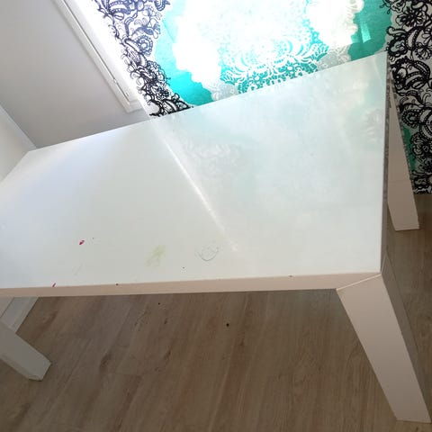 118 x 74 cm kokoinen, runsaasti käytön jälkiä mutta ehjä täysipuu pöytä sekä neljä tuolia. Osa tuoleista hieman kiikkeriä / heiluvia mutta muilta osin ehjät. Vain nouto, Espoo Bemböle.