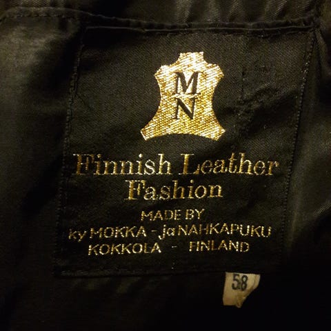 Modak miesten retronahkatakki, koko 52. Musta nahkatakki, jossa nappikiinnitys edessä. Edessä kaksi läppätaskua napeilla. Takissa on ruskea vuori. Sopii arki- ja siistimpään käyttöön ulkotakkina. Materiaalina sileäpintainen nahka, pituus noin lantiolle asti. Yksi nappi irronnut, mutta varanappeja mukana. Varsin hoikka mitoitus.