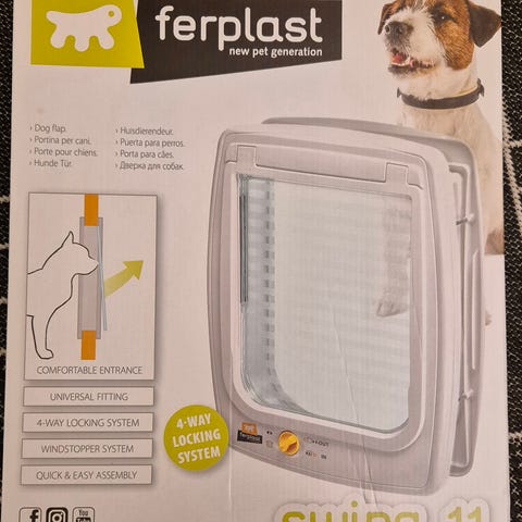 Ferplast Swing 11 koiranluukku valkoinen. Mallissa on Windstopper-järjestelmä, joka auttaa vähentämään vedon tuntua luukun ympärillä. Luukku soveltuu asennettavaksi oveen tai seinään mukana tulevan asennusmallin ja ohjeiden avulla. Luukussa on läpinäkyvä heiluriovi, joka mahdollistaa koiran kulkemisen sisään ja ulos. Pakkaus sisältää koiranluukun, käyttö- ja asennusohjeet sekä asennustemplaatin.