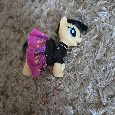 My Little Pony lelufiguuri. Pieni merenneito-ponihahmo. Kunto on kohtalainen, koska pyrstö on jouduttu liimaamaan takaisin. Sopii lasten leikkeihin ja My Little Pony -kokoelmaan.