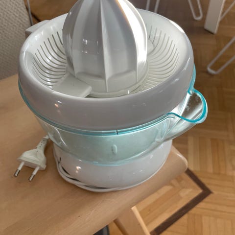 Philips sitruspuristin. Valkoinen muovinen runko ja läpinäkyvä kannu, jossa kaatonokka ja mitta-asteikko. Soveltuu sitrushedelmien, kuten appelsiinien ja sitruunoiden, mehustamiseen kotikäytössä. Helppo puhdistaa, osat irrotettavissa käsinpesua varten.