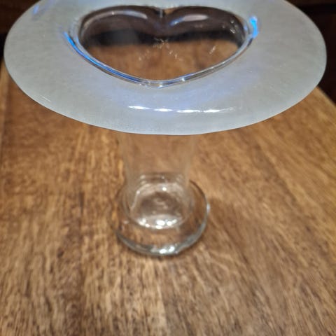korkeus 15cm, yläosan halkaisija ulkomitta 12,5cm, jalka tyylitellyn sydämen mallinen, ulkopohjassa merkintä "muurla",