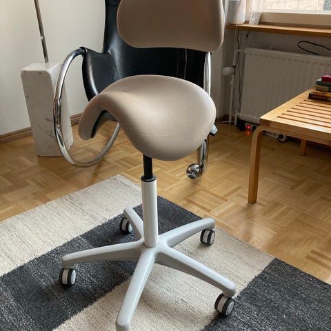Moderni muotoilu, joka sopii hyvin toimistokäyttöön. Pumppu toimii hyvin ja istuinkulmaa voi säätää. Satulatuolit ovat tunnettuja ergonomisesta suunnittelustaan.