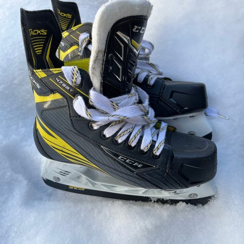 CCM Tacks jääkiekkoluistimet lapsille. Koko EU 38 (USA 4.5). Luistimissa perinteinen nauhakiinnitys. Vähässä käytössä olleet. Nouto Klaukkalasta.