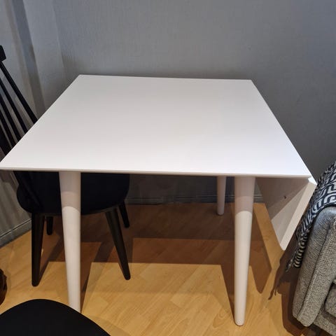 Myydään puinen klaffipöytä. Kokoontaitettuna leveys 64cm.