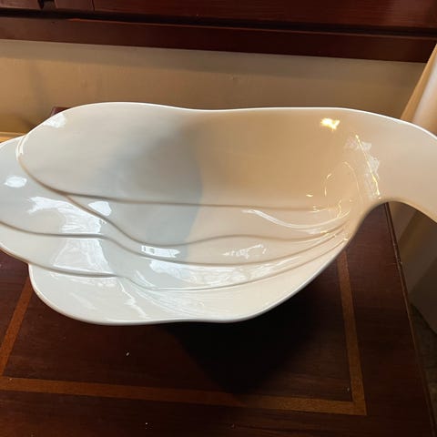 Heljä Liukko-Sundströmin suunnittelema tarjoilulautanen, vähäisiä käytönjälkiä pinnassa, muuten ehjä. Koko 36 x 15,5 cm.