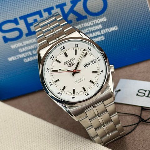 Kaunis ja laadukas Seiko-kello, referenssinumero SRPD67K1 Seiko 5 -mallistosta. Kellon vetovoimaa antaa automaattinen koneisto (Seiko-kaliber 4R36). Lisäksi kellossa on päivän- ja päivämääränäyttö kellon 3:n kohdalla. Kruunu on sijoitettu kellon 4:n kohdalle.Uusi ja käyttämätön!Kello sijaitsee teräksisessä kotelossa ja toimitetaan siihen kuuluvalla teräksisellä rannekkeella.Toimitetaan mukana näytetyt tarvikkeet ja valkoiset asiakirjat.Kello: Automaattinen (Seiko 4R36)materiaali: teräshalkaisija: n. 42,5 mm ilman kruunua.kastdikte: 14mmlasit: HardlexKoko nauha: noin 22 cm, sisältäen kellon.Ikä: 2020+Se lähetetään vakuutettuna.Valokuvien ottaminen on osa kuvausta.
