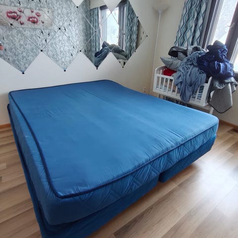 160cm sänky. Pieniä rispaumia tullut muutossa, muutoin erittäin siistissä kunnossa. Ei petaria.