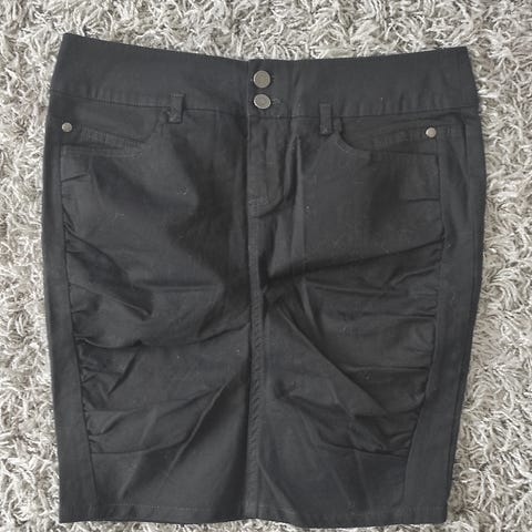 Kaunis hyvin laskeutuva vähän polven yläpuolelle ulottuva hame. Kiva yksityiskohta helmassa.