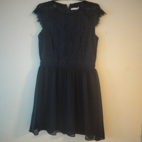 H&M juhla- tai cocktailmekko naisille, koko M. Mekko on beigeä sävyä ja valmistettu polyesteristä. Mallissa on lyhyet, väljät hihat, vyötäröllä kapea irrotettava tai säädettävä vyö ja kevyesti laskeutuva helma. Sopii esimerkiksi juhliin ja muihin siistimpiin tilaisuuksiin.
