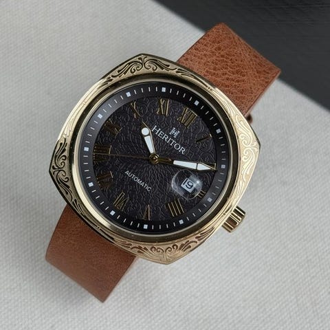 Kaunis miesten rannekello Heritorilta Daxton-sarjasta. Viitenumero HERHS3003. Kellon vetää automaattinen koneisto, joka näkyy sekä kellon takapuolella että etupuolella kellotaulun skeletoidun kautta. Helppolukuinen osoittimien ja indeksien kontrastien ansiosta. Varustettu 24 tunnin näytöllä klo 12:n kohdalla.Uusi ja käyttämätön!Kello lepää mukavalla nahkaisella kellonrannekkeella.Toimitetaan mukaan kaikki esitetyt lisävarusteet ja tyhjät asiakirjat.Kello: automaattinenmateriaali: teräsHalkaisija: n. 43 mm pois lukien kruunu.Hihnan pituus: noin 20 cm, mukaan lukien kello.Ikä: 2024Se lähetetään vakuutettuna.Valokuvien ottaminen on osa kuvausta.
