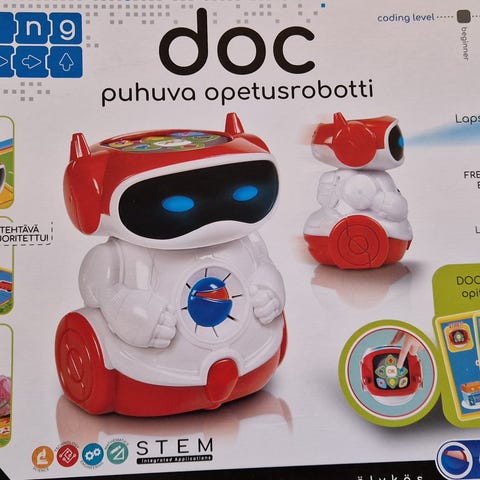 Clementoni Coding Lab Doc on puhuva opetusrobotti lapsille. Pakkaukseen kuuluu robotti, pelialusta ja erilaisia tehtäväkortteja. Lelun avulla voidaan harjoitella loogista ajattelua, ongelmanratkaisua ja yksinkertaista ohjelmoinnin peruslogiikkaa. Tuote soveltuu leikkiin ja oppimiseen kotona, ja sitä voidaan käyttää aikuisen ohjauksessa tai itsenäiseen harjoitteluun valmistajan ikäsuosituksen mukaisesti.