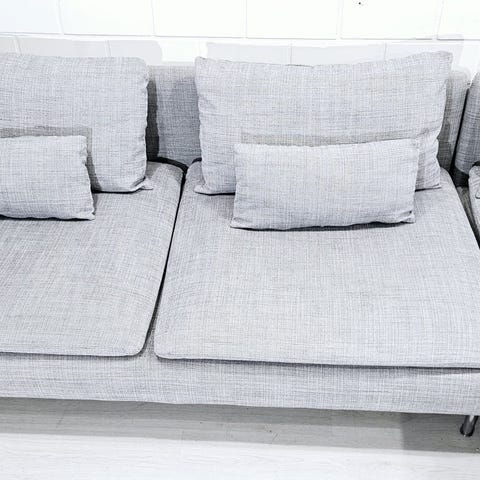 Sohva on hyvässä kunnossa. Päälliset juuri pesty. Päälliset ovat irrotettavat runko myöden. Mitat Leveys 190 cm, syvyys 98 cm divaani 150 cm. Väri Isunda harmaa.