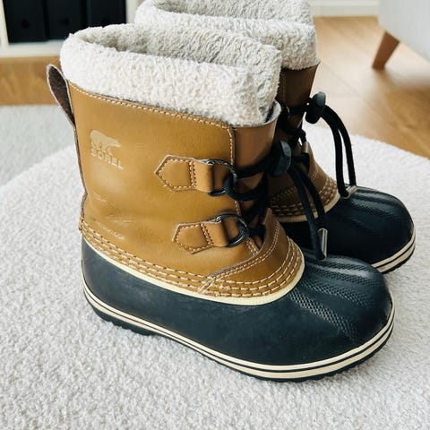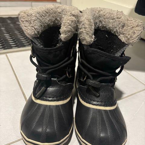 Sorel yoot-vedenpitävät talviloskarit. Lapussa lukee 32 ja sisämitta 19cm, mikä on monien muiden valmistajien 31 ja käytetty lapsilla kyllä koossa 31.