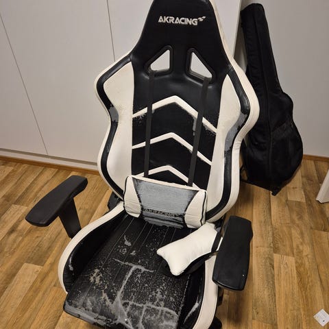 Niskatyyny pelituolille,musta,valkoiset tekstit,uudenveroinen.