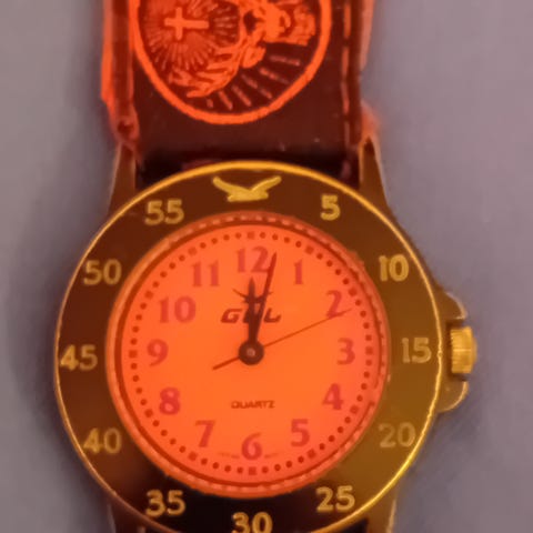Vintagetyylinen Lorus rannekello. Kello ja hihna metallia. Kulumisen jälkiä hihnassa enemmän kuin itse kellorungossa. Hihnaan ei lisä paloja mukana, paloja voi irrottaa nuolen mukaisesti työkaluilla. Vesitiiviysluokitus 3ATM= Sietää sadetta ja roiskeita, kannattaa huomioida että kellon tiivisteet hapristuvat ajan myötä. Kellon tyyppi Lorus V810-6880 ja koneisto Seikon nettitiedon mukaan. Kello toimii moitteetta nykyisellä paristolla toistaiseksi.