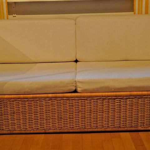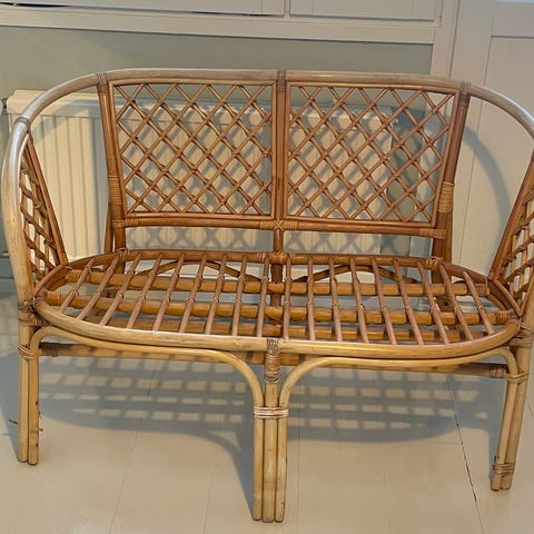 Myydään Ikean kaunis rottinkisohva näppärälle kunnostajalle. Sohva ollut katetulla terassilla, mutta kerännyt kosteutta. Sohva käsitelty homeenpoistoaineella ja aloitettu hiominen, mutta jäänyt kesken. Säilytetty käsittelyn jälkeen sisällä. Homepilkut lähteneet hiomalla. Homepilkkuja löytyy vielä, kuvissa näkyvät pahimmat kohdat.