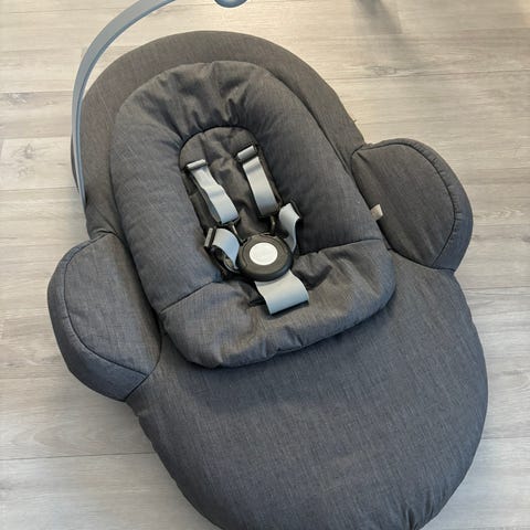 Ostettu meille uutena, mutta ei juuri käytetty kummallakaan lapsella. En muista enää pesinkö päälliset ennen ensimmäistä käyttöä (olettaisin), mutta nyt en ole pessyt (voin pestä kyllä, mutta jos uusi käyttäjä aikoo itsekin pestä, niin ei tule turhaa tuplapesua ja kulutusta materiaalille). En löydä tahroja enkä käytön jälkiä. Lelukaari ja pienennysosa mukana. (Huom! Tämä ei ole sitteriversio, vaan kiinnitetään syöttötuoliin.) Takana olevan tarran mukaan valmistettu 16.10.2019.