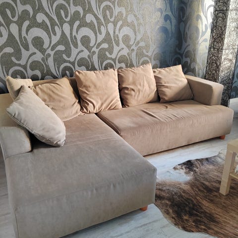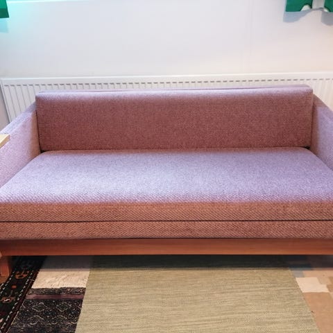 Sohva voidaan muuntaa sängyksi. Pienet käytönjäljet sisältyvät hintaan.