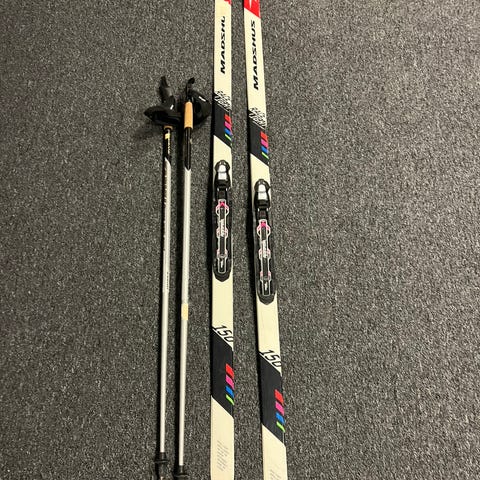 CLR Sports Cap Classic -perinteisen tyylin maastohiihtosukset siteillä, pituus 150 cm ja Oneway 100cm sauvat.