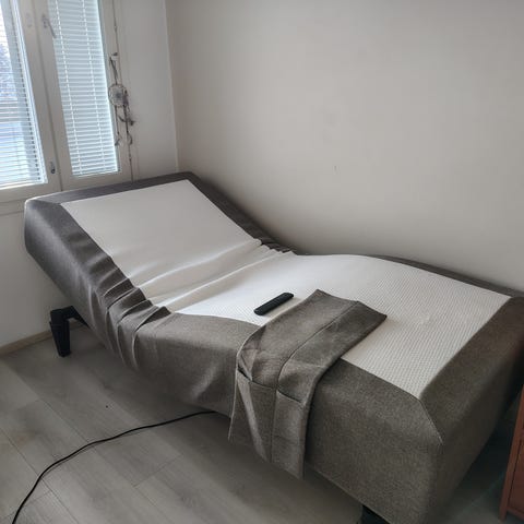 Auto lastensänky. Tällä hetkellä nostettu lämpimään autotalliin pois uuden tieltä. Ehjä, pohjasäleet irrotettu, ne tulevat kiinni runkoon. Lastenkokoa, sopii n. alle 10 vuotiaalle.