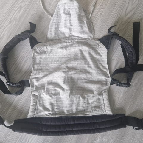 Eskarikokoinen Wompat-kantoreppu, valmistettu Turussa. Kantorepussa on säädettävät olka- ja vyötäröhihnat sekä soljet, joilla kantoreppu voidaan sovittaa eri kokoisille kantajille.