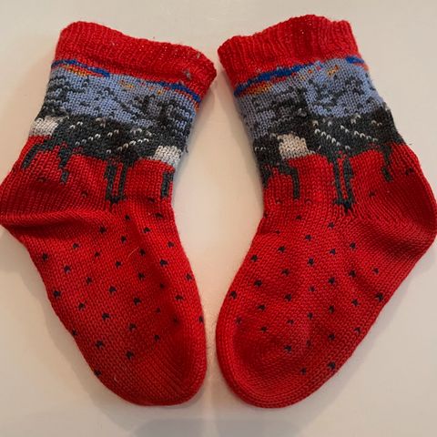 Uudet 7 veljeksestä neulotut heppavillasukat, koko noin 30/31, ei ainakaan sen pienempi. Resorissa ja terän kärkiosassa lilan langan seassa aavistuksen kimaltavaa lankaa.