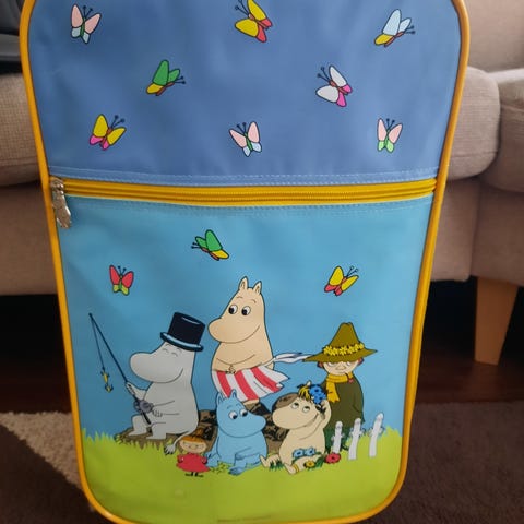 Tässä lapselle toimiva oma matkalaukku minne voi opetella pakkaamaan omia tärkeitä tavaroitaan mukaan vaikka mummolaan.