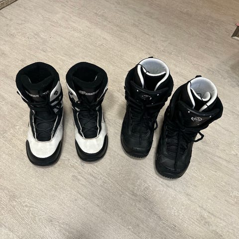 Crazy Creek lumilautakengät. Väritys harmaa-valkoinen mustilla yksityiskohdilla. Nauhakiinnitys edessä ja lisäkiinnityskoukut varressa. Pehmustettu ja korkea varsi tukee nilkkaa. Sopivat lumilautailuun ja muuhun talviliikuntaan, joissa tarvitaan tukevia ja lämpimiä kenkiä.