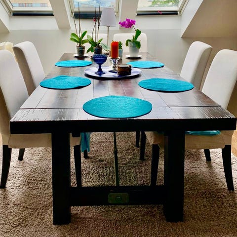 Valkoin massiivinen ruokapöytä