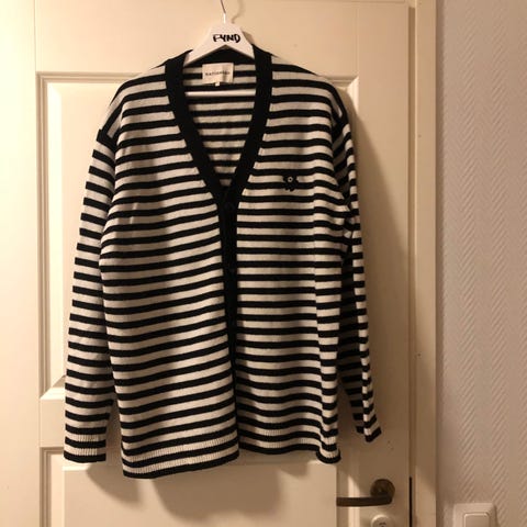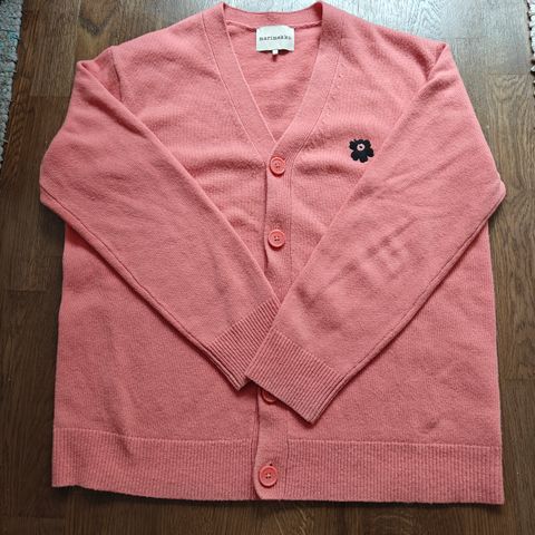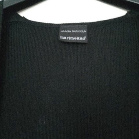 Marimekko neuletakki naisille, koko XL. Väri musta. Materiaali 100 % uutta villaa. Mallissa on avoin etuosa, joka suljetaan nauhakiinnityksellä. Valmistettu Suomessa. Hihansuut levenevät hieman ja ovat pitkähköt.