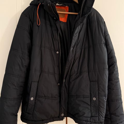Luhta miesten takki, koko 54. Väri musta. Materiaali polyesteriä. Täyte 90% untuvaa ja 10% höyhentä. Kevyesti topattu, vaakasuorat tikkaukset ja pystykaulus. Edessä vetoketjukiinnitys. Sopii arki- ja ulkoilukäyttöön viileämpiin säihin.
