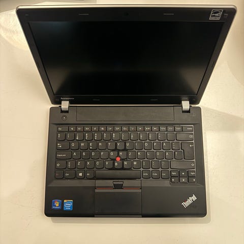IBM Lenovo ThinkPad kannettava tietokone mustalla rungolla. Laitteessa on täysikokoinen näppäimistö erillisellä osoitintatilla (TrackPoint). Käyttöjärjestelmänä näkyy kuvissa Windows XP. Kovalevyn koko on noin 100 Gt, josta osa käytössä ja osa vapaana. Kannettavassa on optinen asema CD/DVD-levyille. Soveltuu peruskäyttöön ja vanhempien ohjelmistojen ajamiseen, jotka vaativat Windows XP -ympäristön.